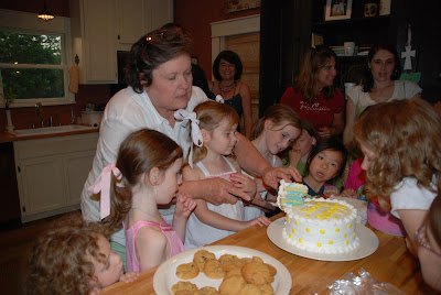 Look at that anticipation on these sweet faces!! They all helped CC--Keri's mom--cut the cake to see what the answer would be.